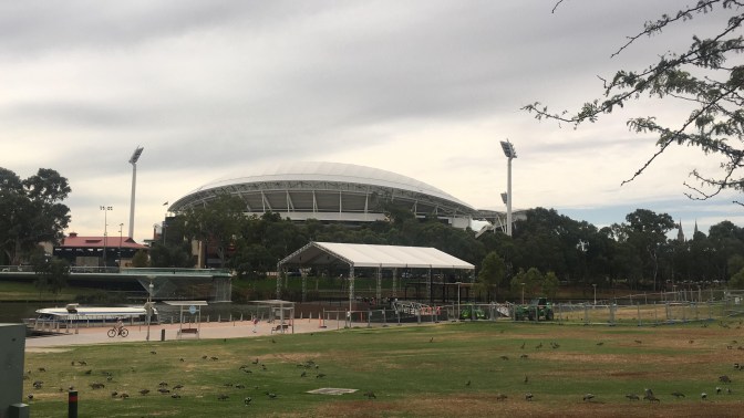 Culturally exhausted, or bored as the kids would say, we headed out to hire a pedalo on the river just in the shadow of the Adelaide Oval. Again, with our amazing planning, it was closed and we had just missed the last river cruise which departed as we arrived. You couldn’t make it up! Instead we sat at a table on the veranda with a view of the river and had a cool drink in the early evening sunshine. We laughed and joked and watched people heading home from work, runners, dog walkers and young rowers heaving their way up and down the river. It wasn’t the worst way to spend a half hour.