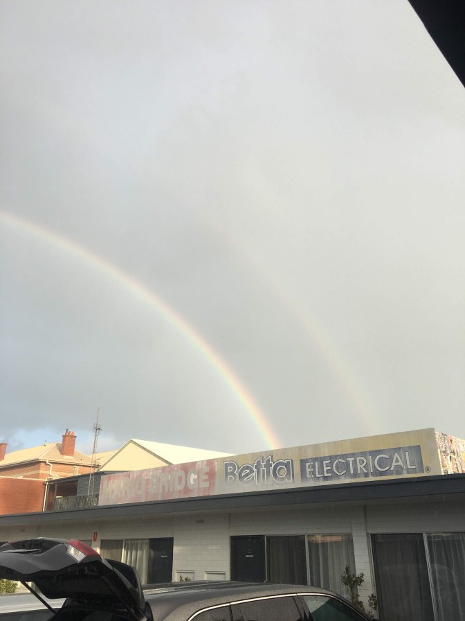 It was about a 50 minute scoot over the farmlands towards Victor Harbor, driving through slightly greener farmland that we had seen on the island and with much less roadkill at the side of the road. It wasn’t too different to Northumberland to be honest, just a bit drier and with much more weirdly shaped trees. Eventually we dropped down into the town and, compared to our week on the Island it was a bit weird to see such a big old town. It had a McDonalds and a main shopping street! It was a lovely place, it felt like a proper seaside town, a tourist destination rather than a nature reserve if that makes sense? We drove down the main street to the motel we had booked and it was right in the middle of the town centre, perfect for us. We checked in and drove down to the parking space right outside our room which looked to have been either recently built or recently renovated as it looked very clean, neat and new. The kids were in a room with a bunk bed and a single and we had a double bed with a big old TV and plenty of space for suitcases and kit. There was even a little kitchen with a fridge and kettle! It was simple but perfect for what we needed for our one night stay over.