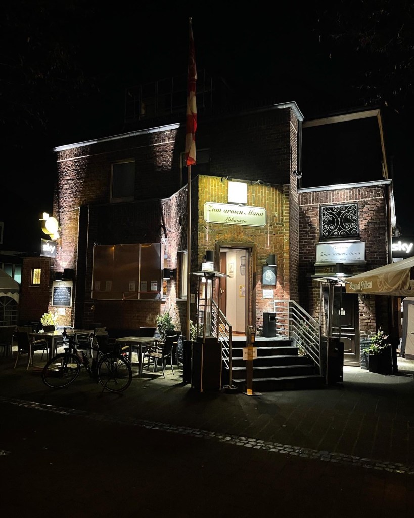 We decided to check out a lovely looking bar, The Zum Armen Mann (The Poor Man) and see if they served food as they seemed to have a menu pinned next to the door. As we walked up the handful of steps to check out the notice, we were welcomed by a young lad that was obviously the bar owner with his little apron on and a sports cap.