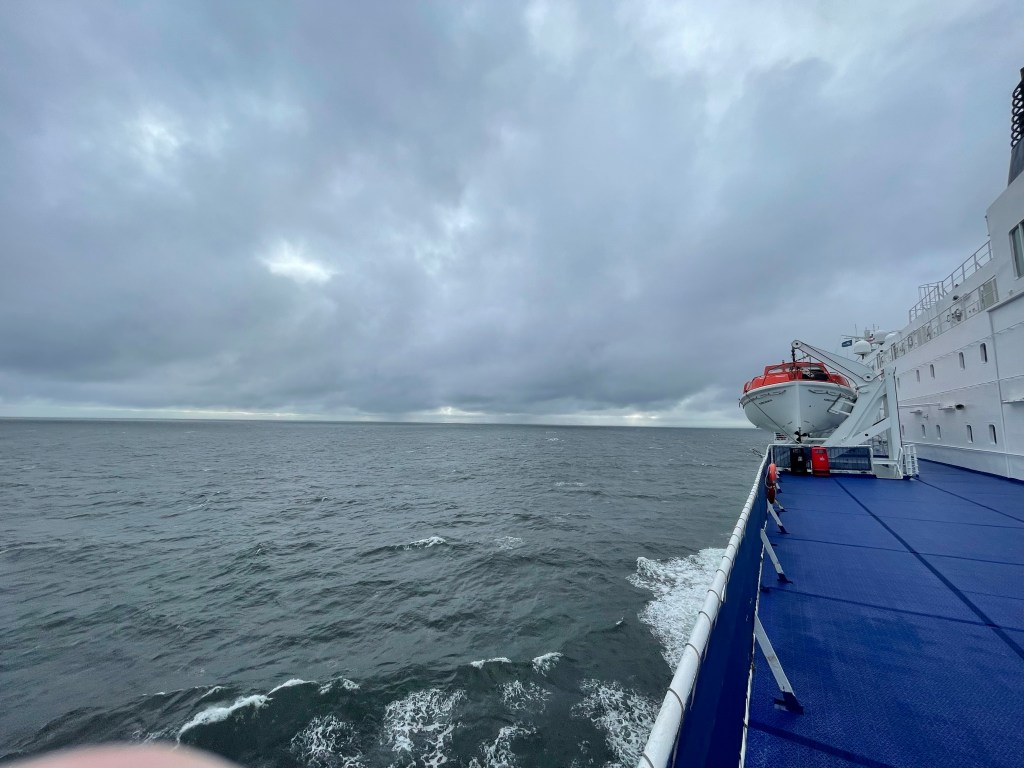 We made our way on deck and watched as the ferry made its way out of the dock, out of the Tyne and into the North Sea. Our eyes were whipped into tears with a salty wind hitting our faces, making it hard to discern the coastline behind us disappearing from sight. The difference between the river and the open sea in terms of the pummelling that the boat received was noted, and that was on a very calm day all things considered.