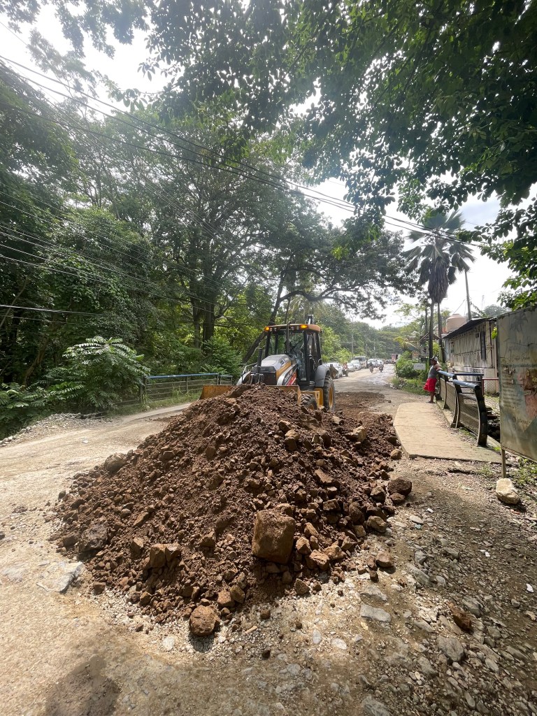 In fact, as we made our way up the road we actually saw the road improvement programme taking shape. We had missed the part where a load of soil and rocks had been deposited in the middle of the road but we did see a digger smoothing this out across the road, filling in the holes and doing his best to hide the huge boulders that were mixed in with the finer red soil.