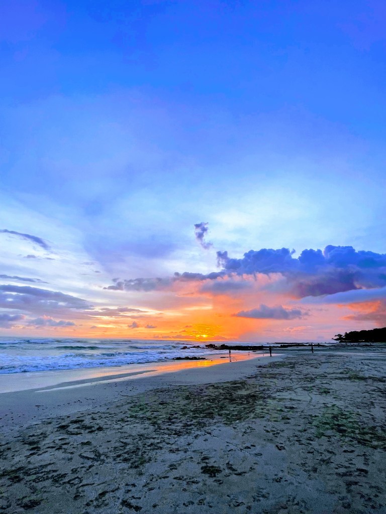 Once we were fully relaxed, we decided to take a walk down to the perfect golden beach to see if we were able to fit in any more relaxing. The water was warm and perfectly clear and after a brief plodge I headed back to the golden sands and let the kids fight over whose turn it was on the body board.